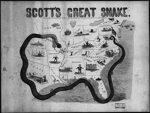 Context: This cartoon etching by an anonymous artist portrays Thomas Jefferson. The speech balloon on the left reads, "Pull Away Pull Away my Son don't fear I'll give you all my assistance" and the one on the right reads, "Oh! I fear it is stronger rooted than I expected but with the assistance of my Old Friend and a little more Brandy I will bring it down."