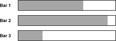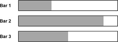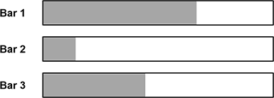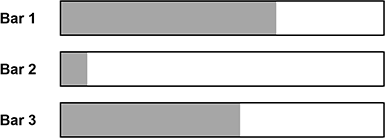- Three partially shaded bars are shown. The approximate amount of shading in each bar is as follows: bar 1, between 65 and 75 percent; bar 2, between 85 and 95 percent; bar 3, between 25 and 35 percent.