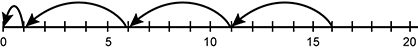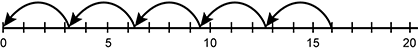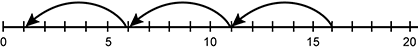- A number line is shown that starts at 0 and extends to 20 in units of 1. An arrow extends to the left from 16 to 11, then from 11 to 6, then from 6 to 1, and then from 1 to 0.