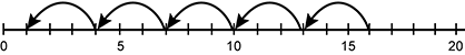 - A number line is shown that starts at 0 and extends to 20 in units of 1. An arrow extends to the left from 16 to 13, then from 13 to 10, then from 10 to 7, then from 7 to 4, and then from 4 to 1.